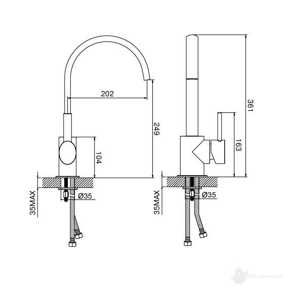 | Гибкий подвод воды | длинна шлангов 30 см, гайка 1/2 дюйма |