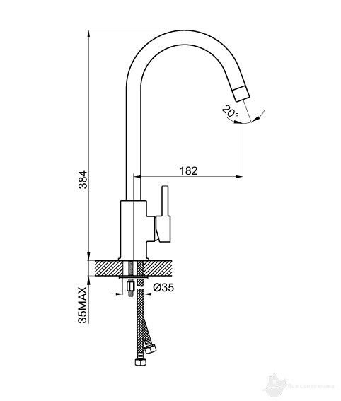 | Гибкий подвод воды | длинна шлангов 30 см, гайка 1/2 дюйма |
