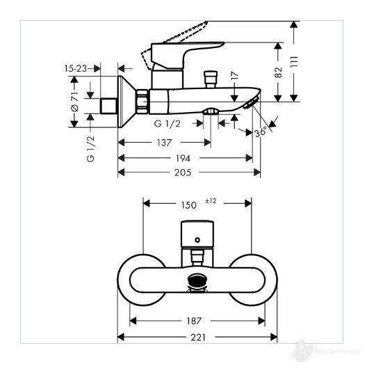 71740000 Talis E Смеситель для ванны, однорычажный, хром