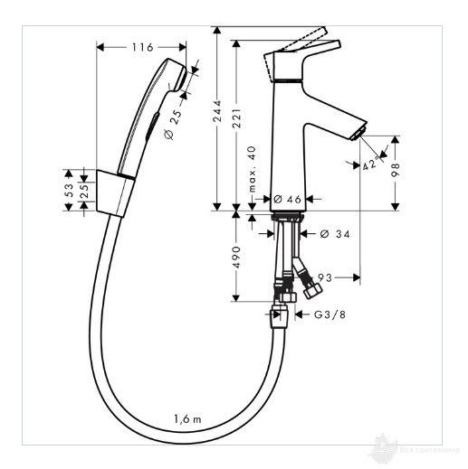 72290000 Talis S Смеситель для раковины с гигиеническим душем, с донным клапаном Push-Open, хром