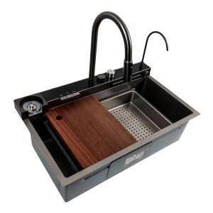 Кухонна мийка 75*46D PVD сіра Platinum Handmade "ВОДОСПАД" — неймовірно популярна кухонна мийка, справжнє відкриття ! Її багатофункціональність і комплектація зі змішувачем роблять її незамінним аксесуаром для будь-якої кухні.