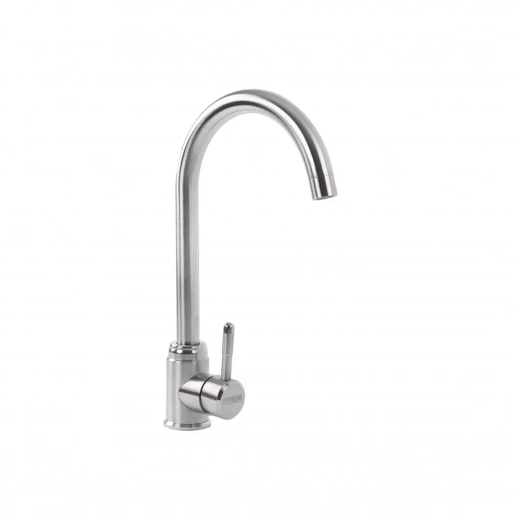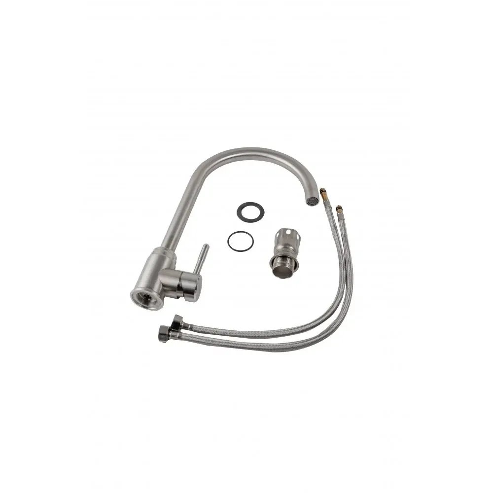 Смеситель кухонный Platinum 221N (8650) поворотный, однорычажный из нержавеющей стали, Серый (000032606)