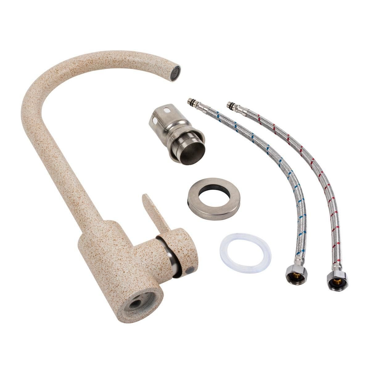 Но это еще не все! Вы можете заказать смеситель в цвете, который идеально вписывается в дизайн вашей мойки из искусственного камня. Также в комплекте вы получите гибкую подводку и крепления для беспроблемной установки.