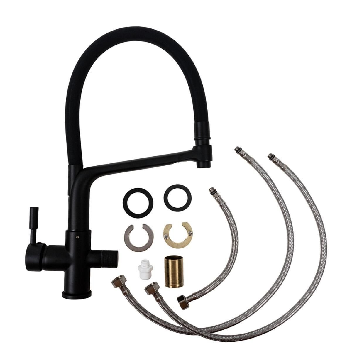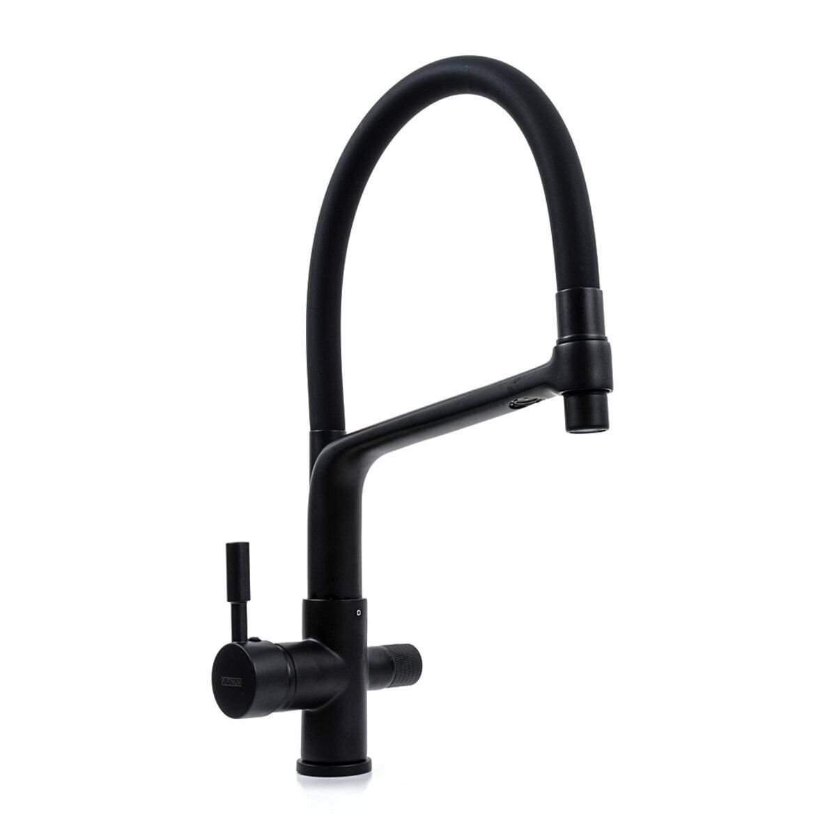 Використовуючи підключення до водопроводу та фільтру, ви можете бути впевнені, що вода, яку ви використовуєте, завжди буде чистою та якісною. Чорний гнучкий гусак додає певного шарму до змішувача, створюючи сучасний образ.