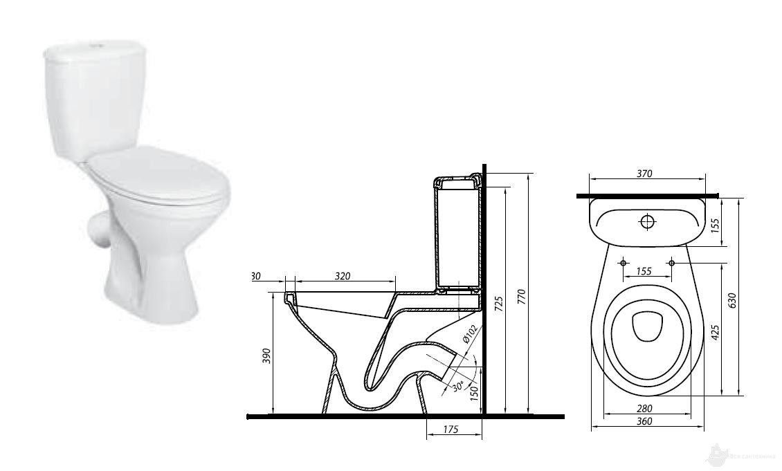 Компакт напольный состоящий из: унитаз с косым выпуском, сливной бачок 3/6 л с нижним подводом воды, сиденье с крышкой, мягкое. Керамика украинского производства с возможностью покупки только в Украине.