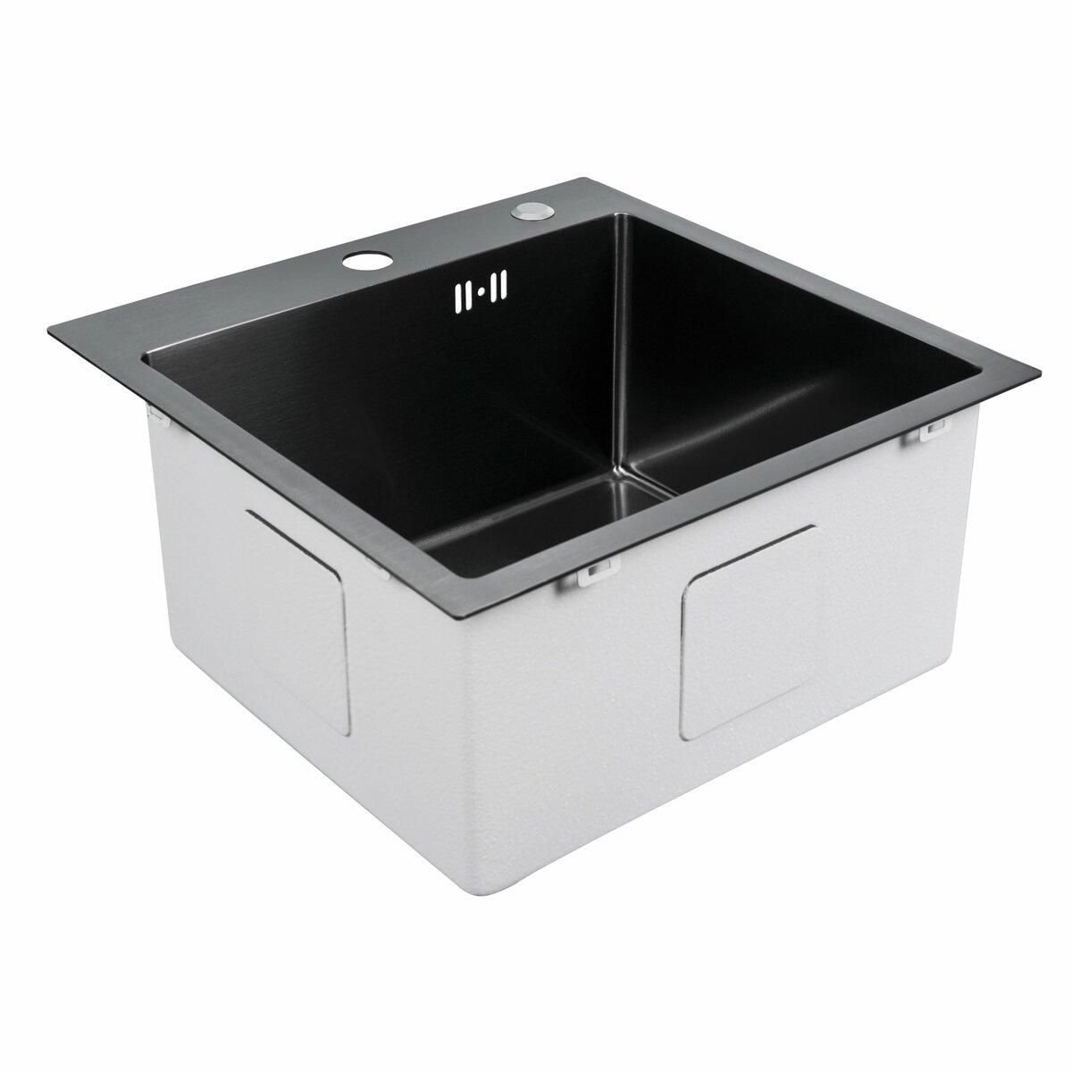 Кухонна мийка 45*45 Platinum Handmade PVD чорна (сифон крулий 3,0/0,8)