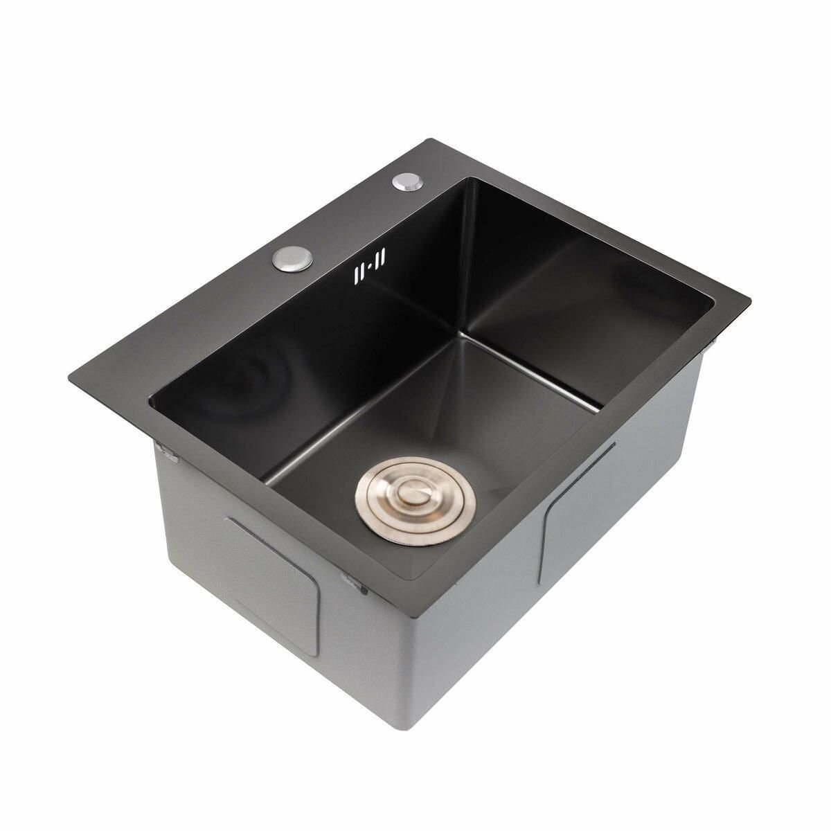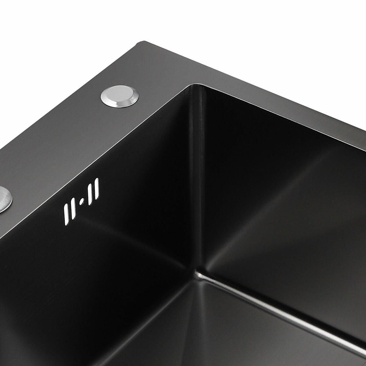 Кухонна мийка 50*45 PVD чорна Platinum Handmade (сифон круглий чорний, 3,0/0,8)