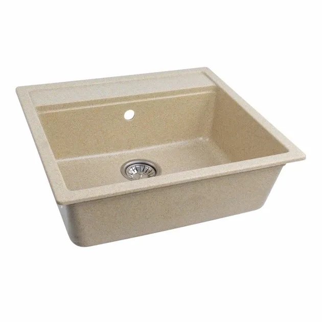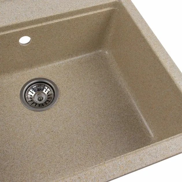 Мойка имеет матовую фактуру и приятный для глаза цвет - бежевый, что позволяет ей легко вписаться в интерьер кухни.