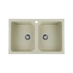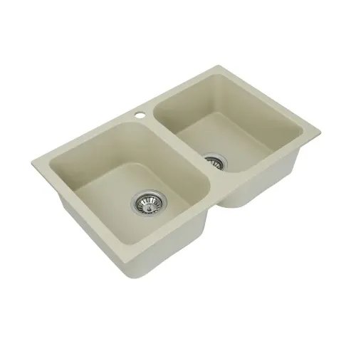 Кухонная мойка Platinum 7648W TWIN гранитная глянцевая с креплением, 76x48 см, Айвори (000027516)