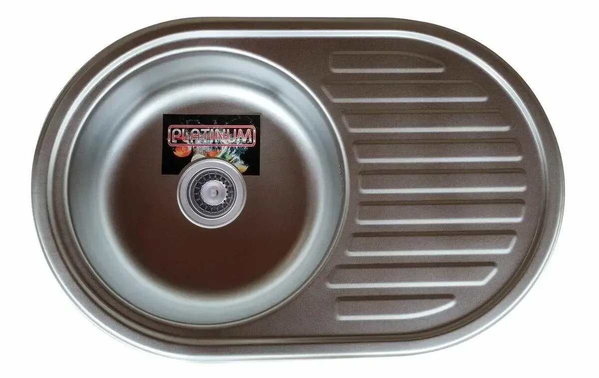 Кухонная мойка Platinum 7750 из нержавеющей стали 0,8 мм, 77x50 см, Овальная, Полированая (000000497)