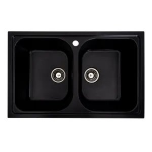 Кухонная мойка Platinum 7950 Equatoria гранитная глянцевая с креплением, 79x50 см, Черный металлик (000035801)