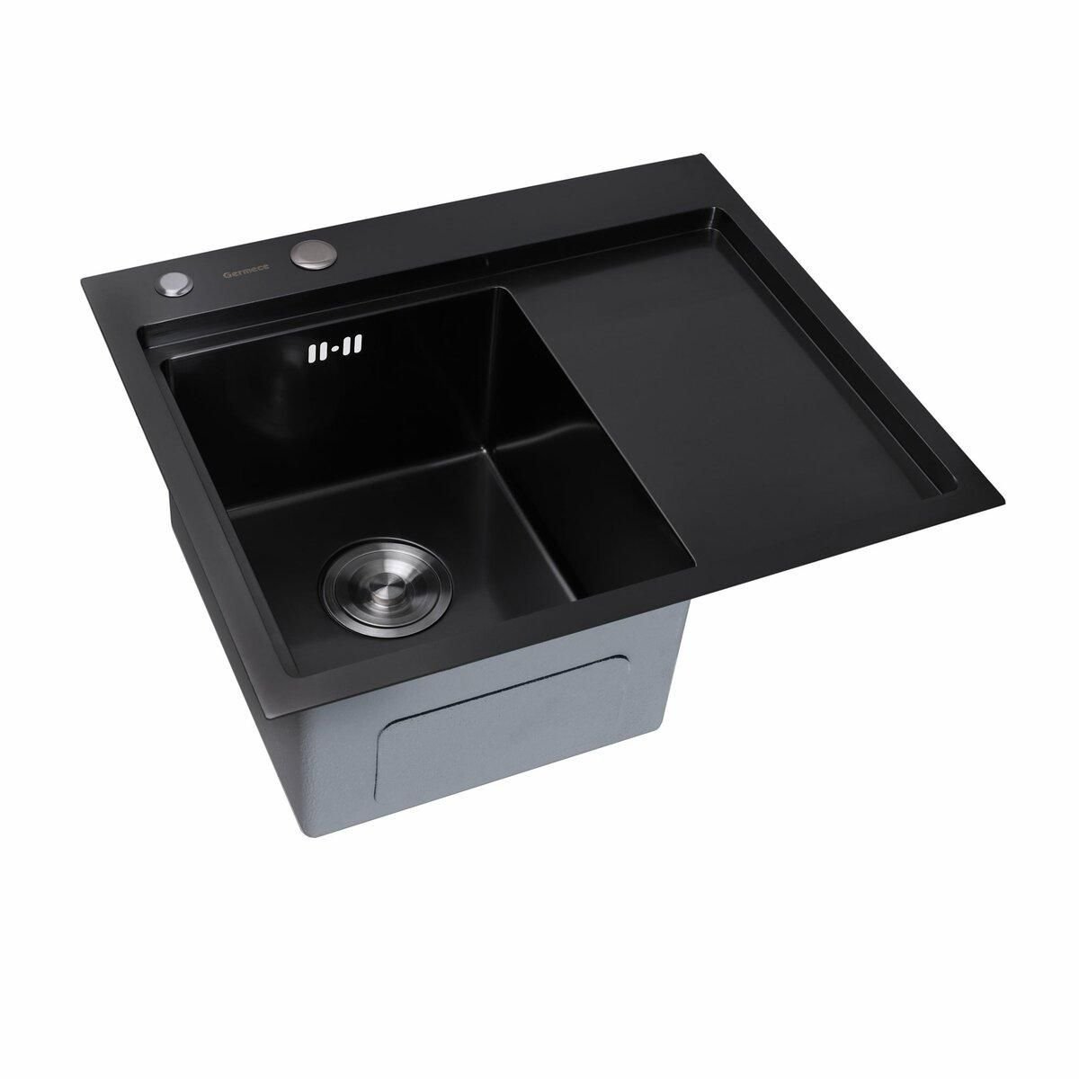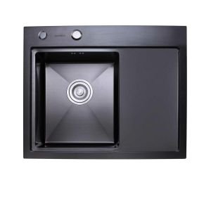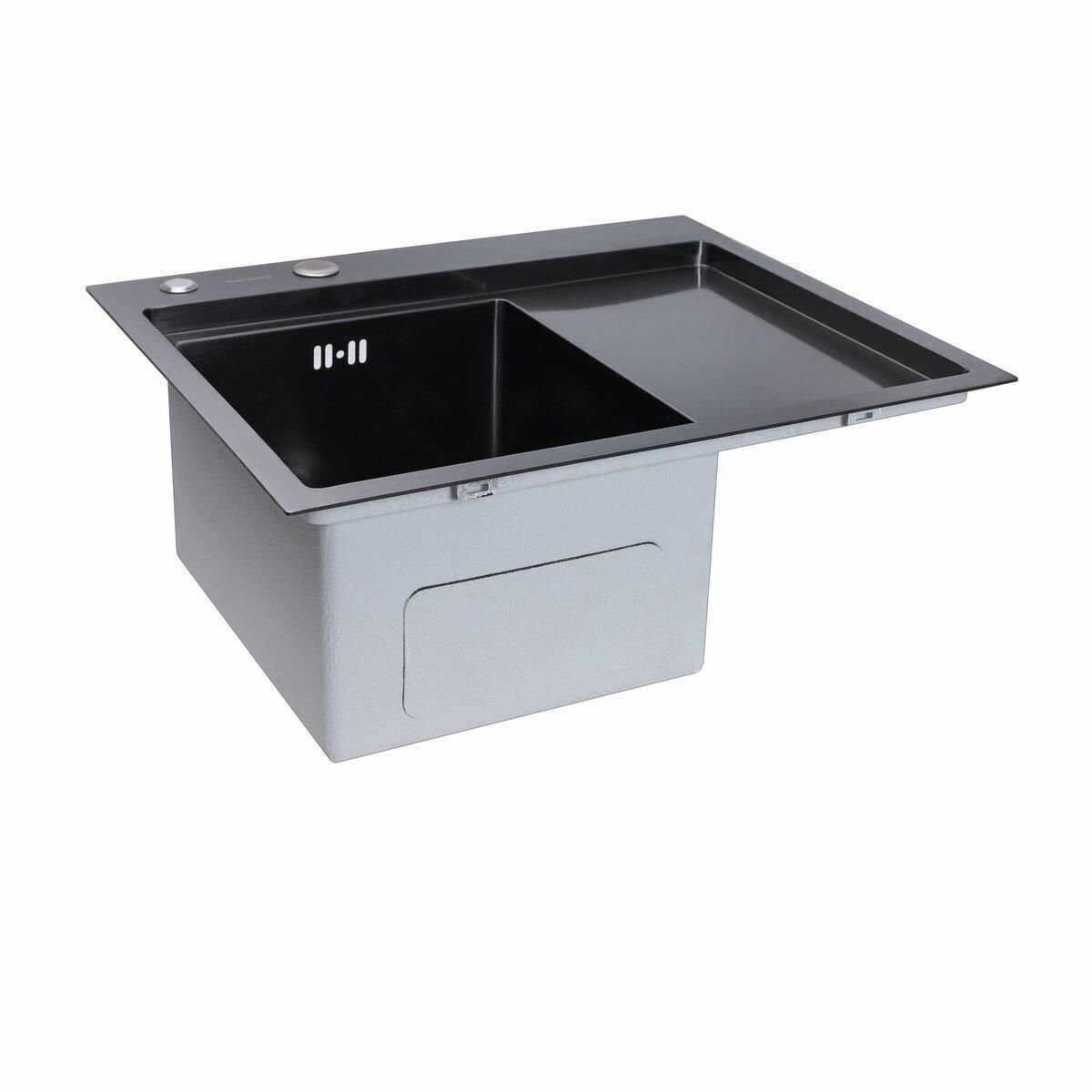Кухонная мойка PLATINUM HANDMADE 580Х480Х220 L чорна (толщина 3,0/1,5 мм корзина и дозатор в комплекте))