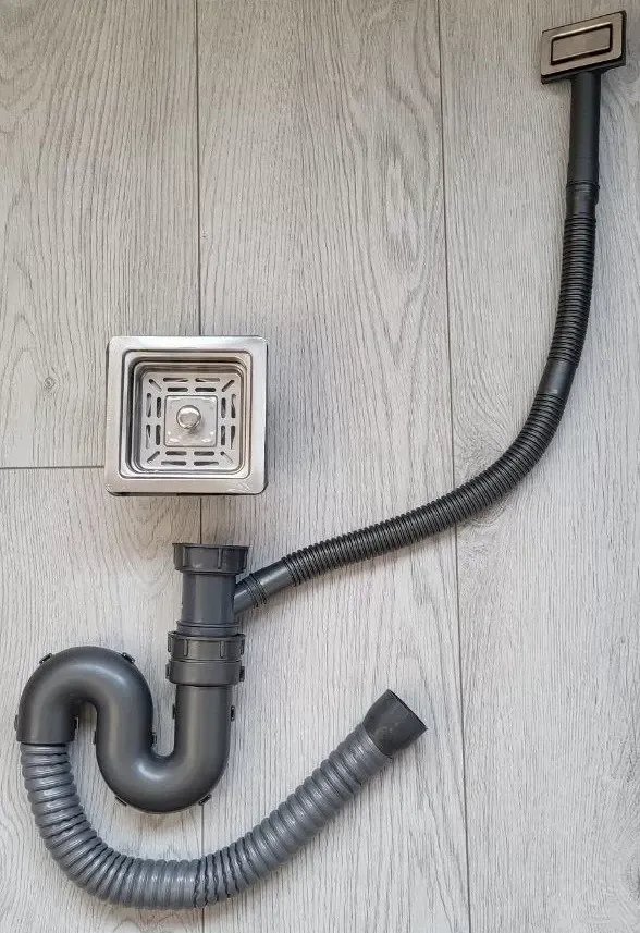 Сифон который идет в комплекте имеет прямоугольный перелив и мусоросборник.