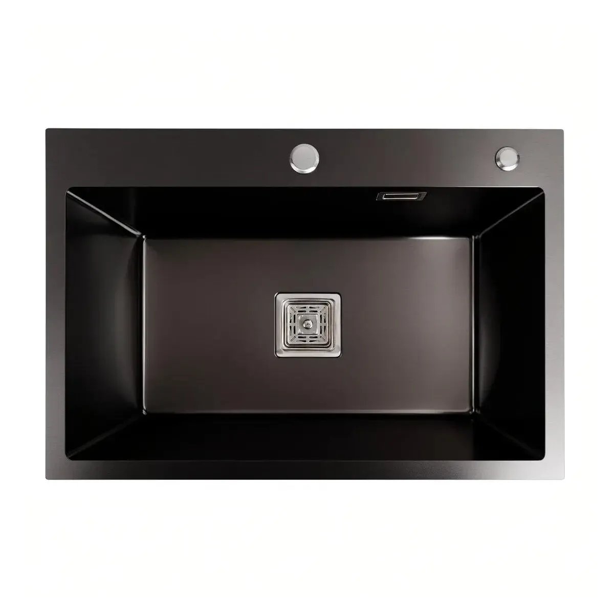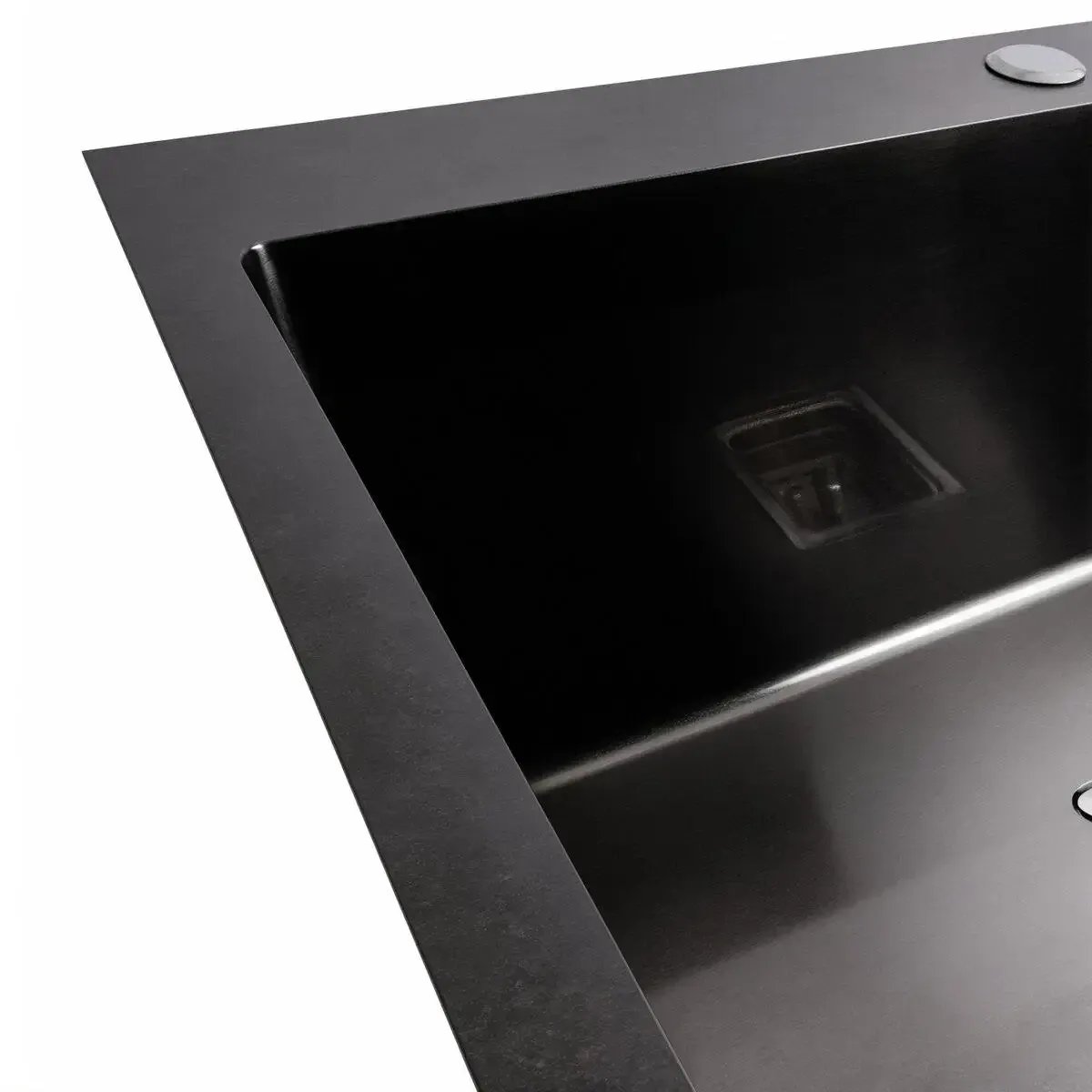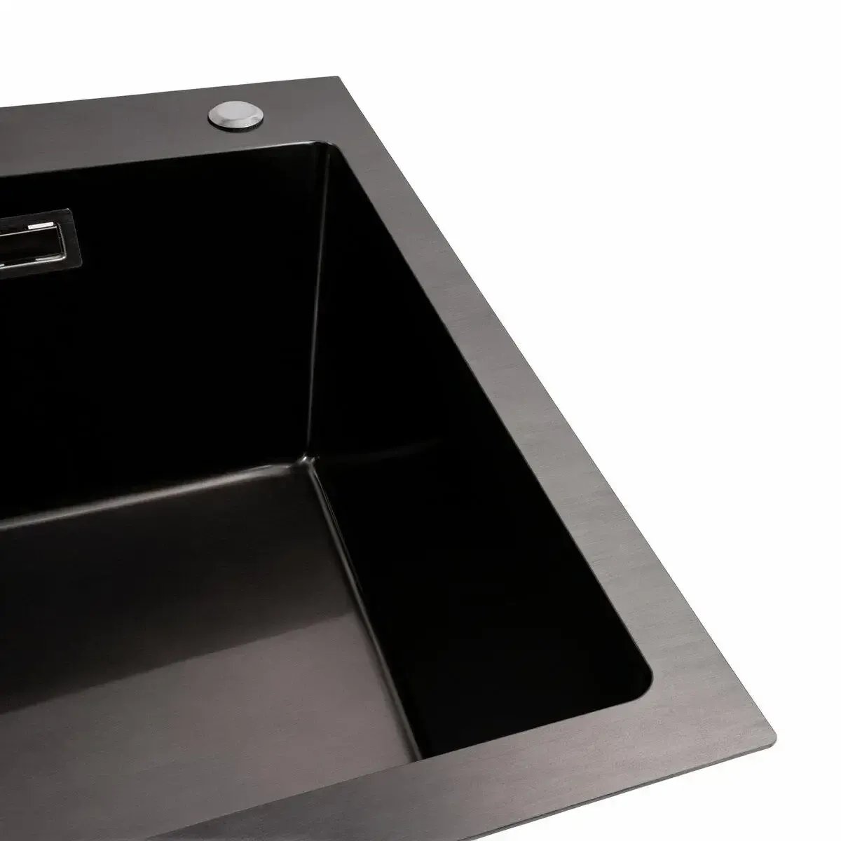 Кухонная мойка Platinum Handmade PVD HSB из нержавеющей стали 3 мм, 65x45x23 см, Прямоугольная, Черная