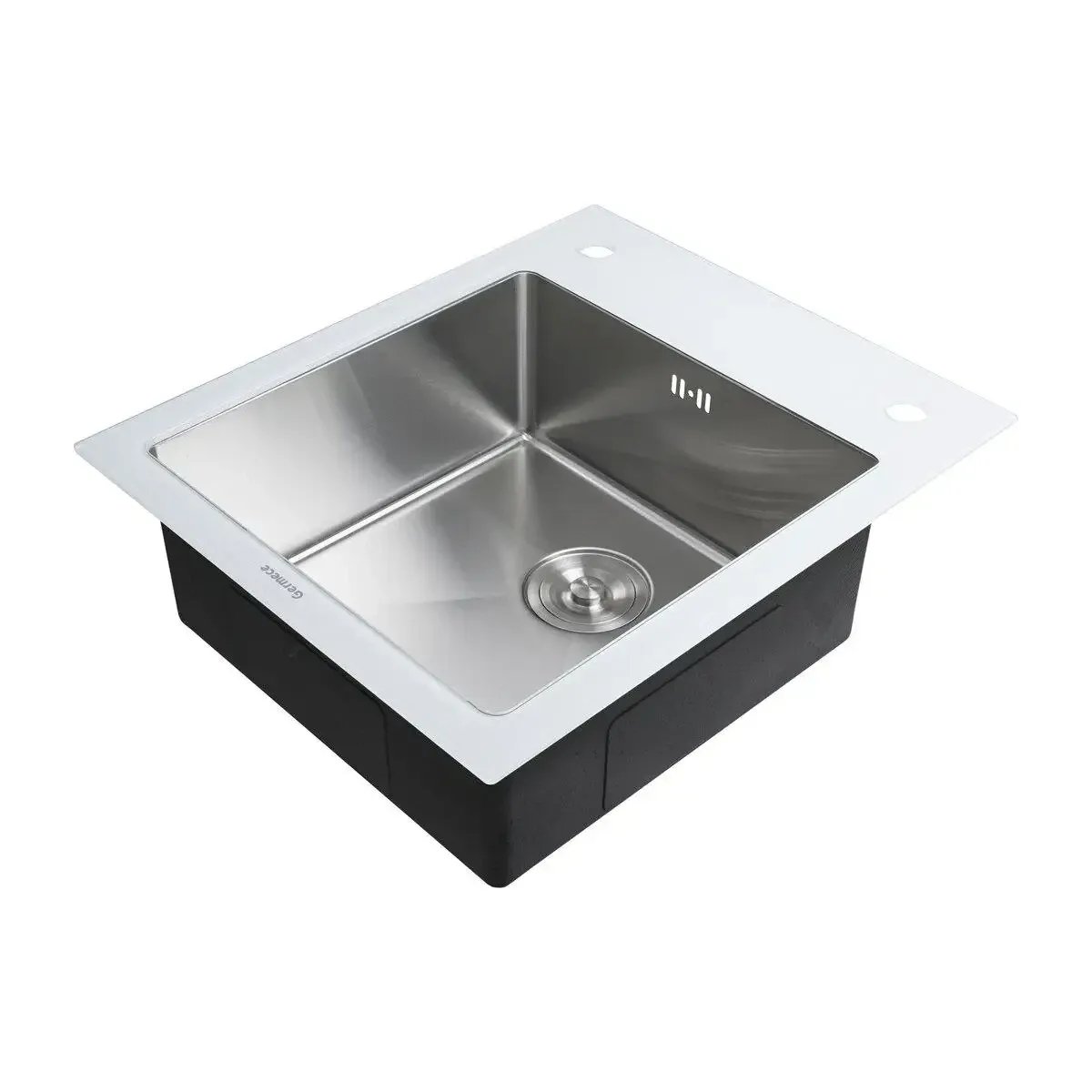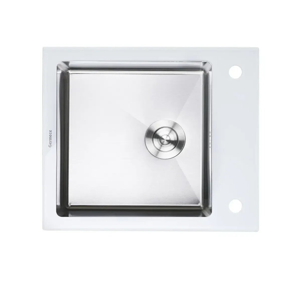 Кухонная стеклянная мойка Germece Handmade White Glass из нержавеющей стали 3 мм, 60x51x20 см, Прямоугольная