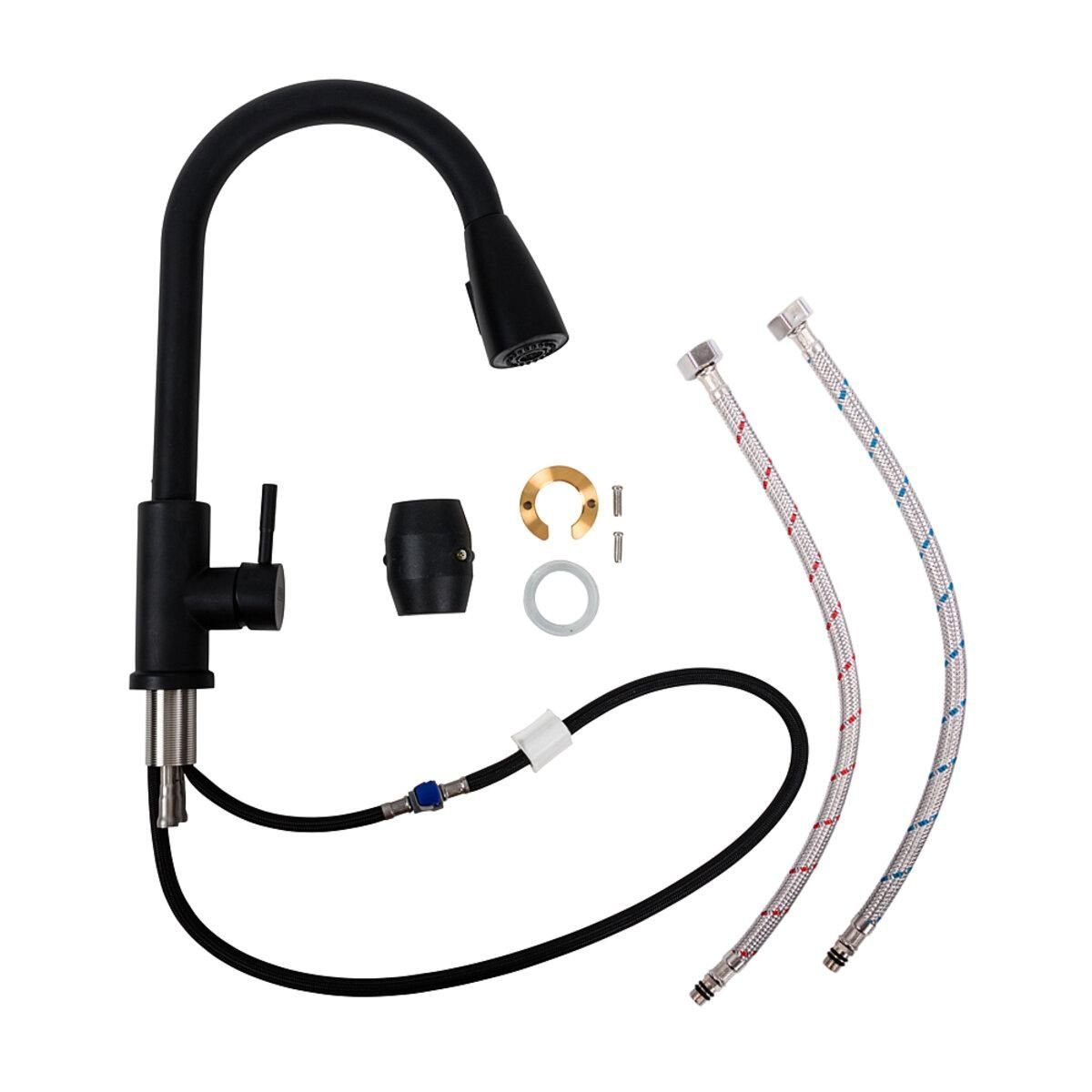 LN08 змішувач кухонний Platinum (чорний з висувною лійкою)