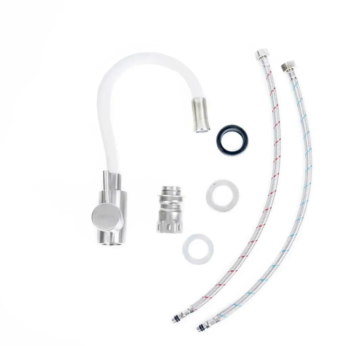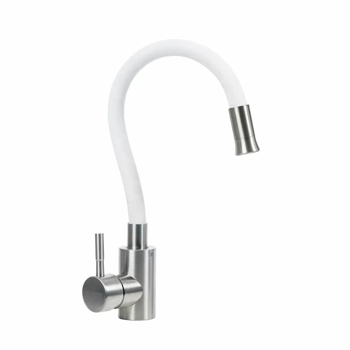 Смеситель кухонный гибкий Platinum KT 91 однорычажный из нержавеющей стали, Белый (000034765)