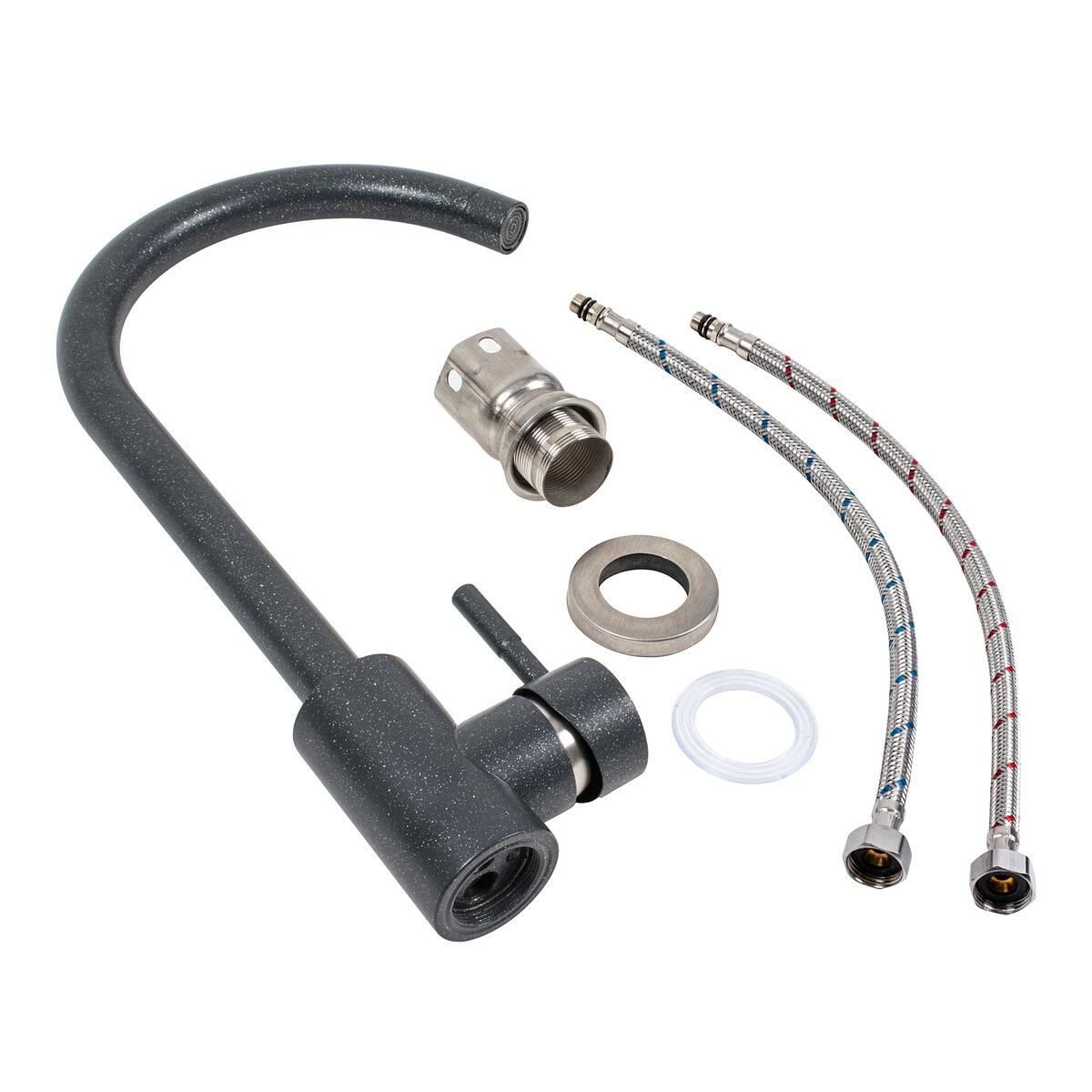 Смеситель кухонный Platinum 56 B NESP (3008 А) поворотный, однорычажный из нержавеющей стали, Антрацит