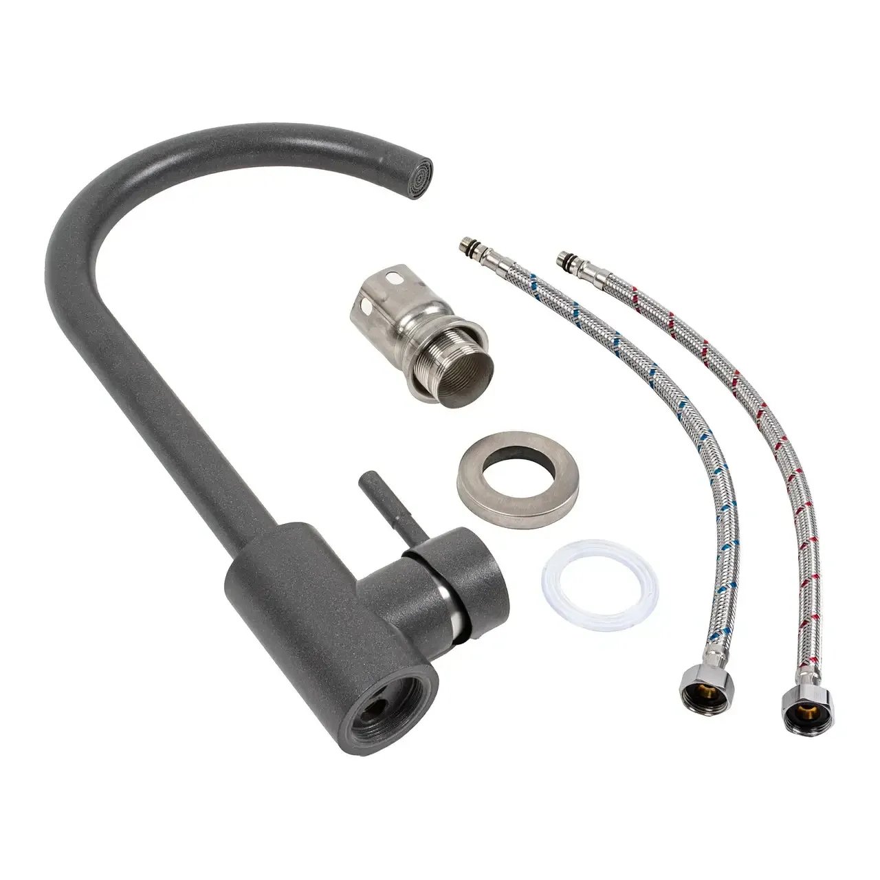 Смеситель кухонный Platinum 56 B NESP (3008 А) поворотный, однорычажный из нержавеющей стали, Морион