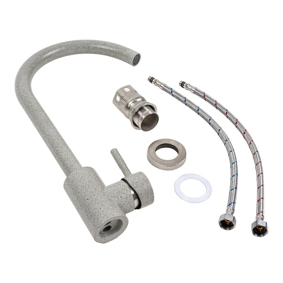 Смеситель кухонный Platinum 56 B NESP (3008 А) поворотный, однорычажный из нержавеющей стали, Серый