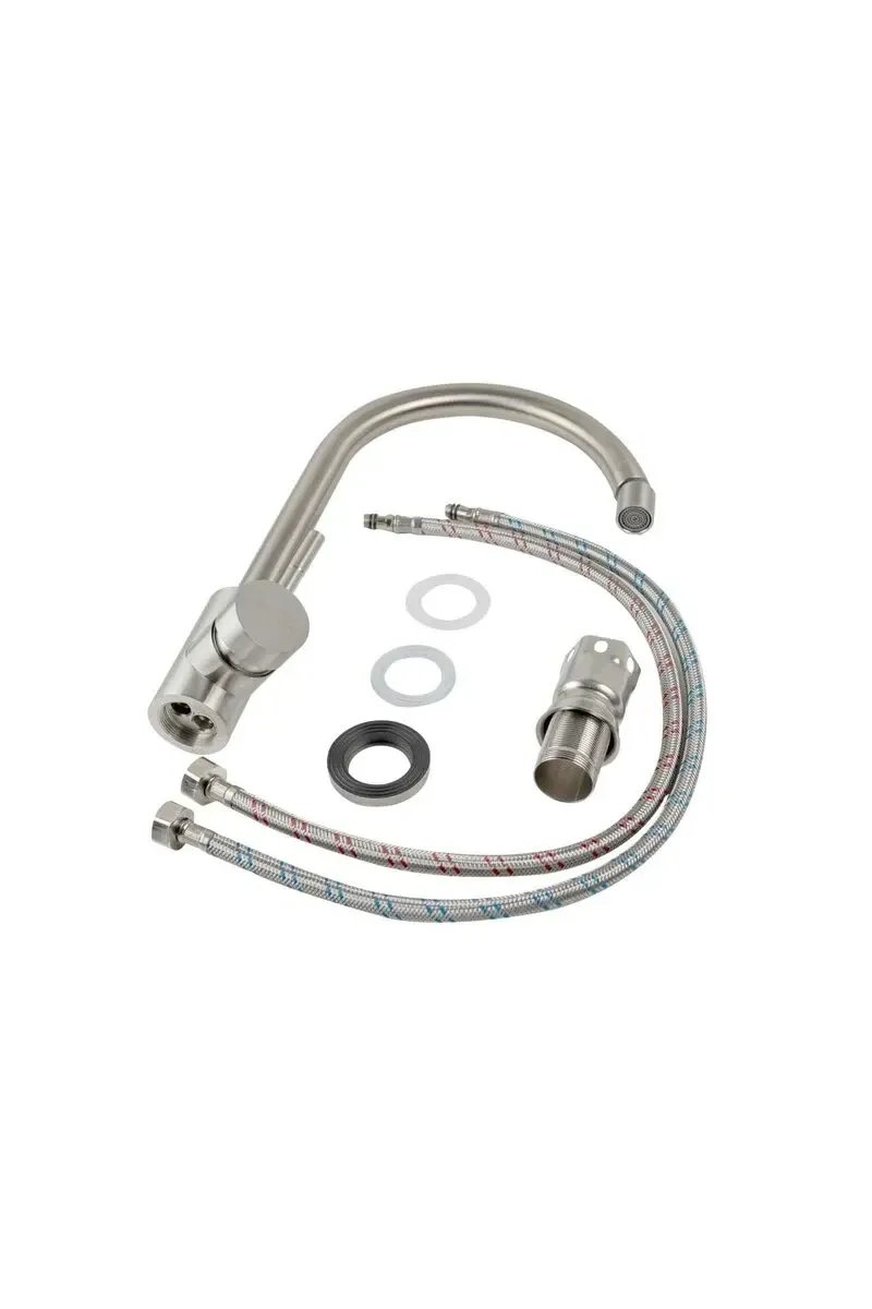 Смеситель кухонный Platinum 57 NESP (8601R) поворотный, однорычажный из нержавеющей стали, Серый (000035269)