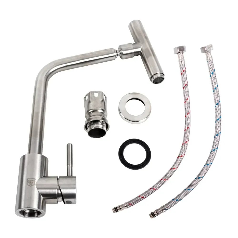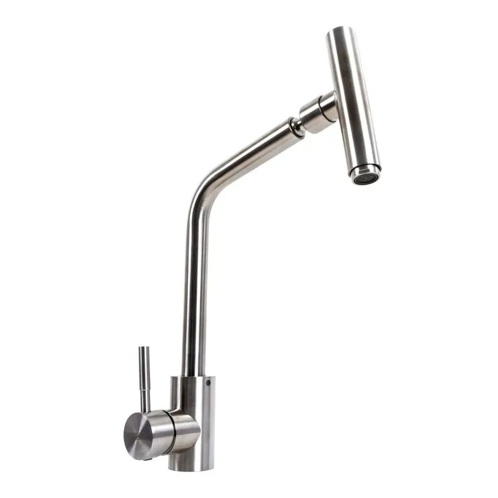 Смеситель кухонный Platinum 6766 KT поворотний, однорычажный из нержавеющей стали, Серый (000036391)