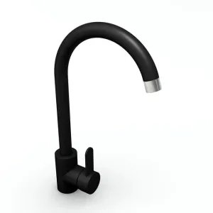 Смеситель кухонный Platinum 7990 NEST (3008 А-FN) поворотный, однорычажный из нержавеющей стали Черный матовый