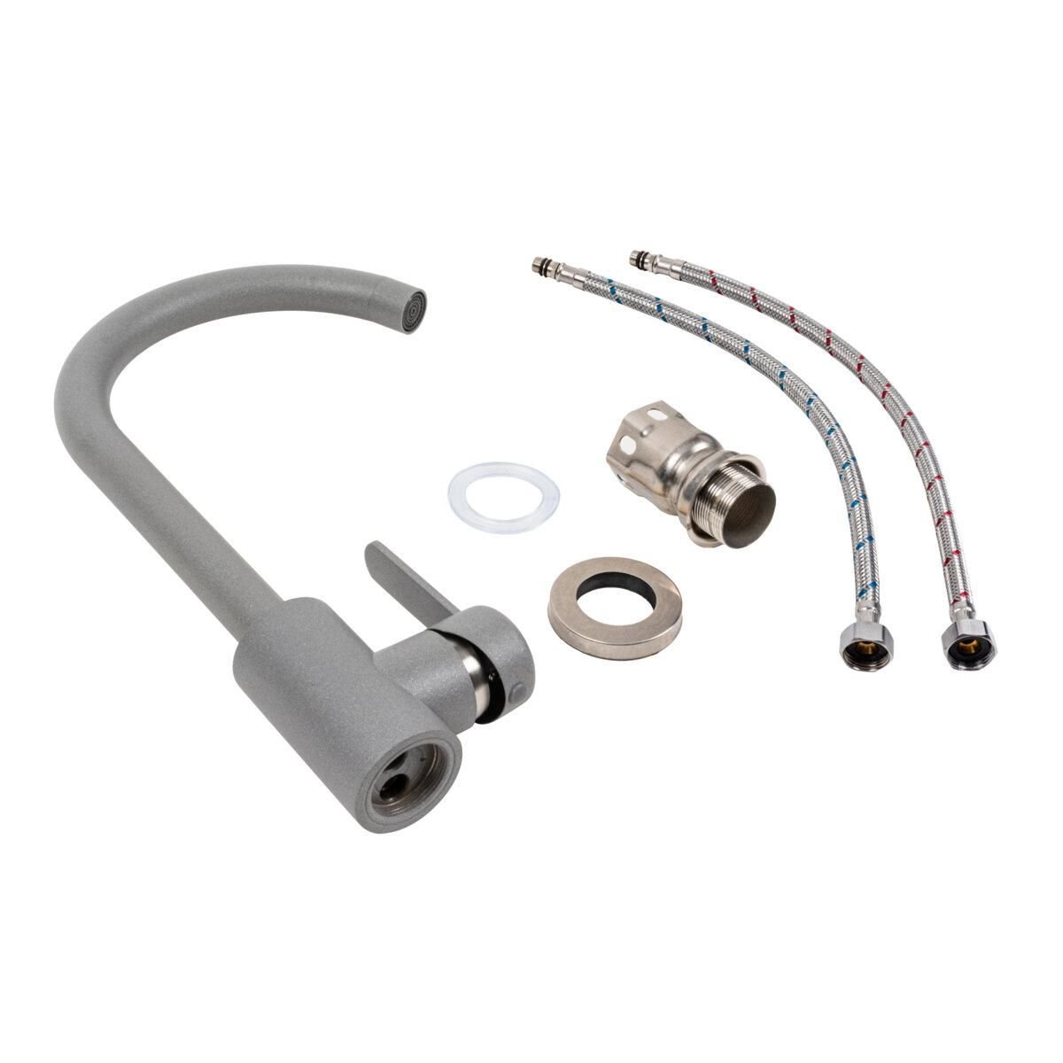 Смеситель кухонный Platinum 7990 NEST поворотный, однорычажный из нержавеющей стали, Серый металлик