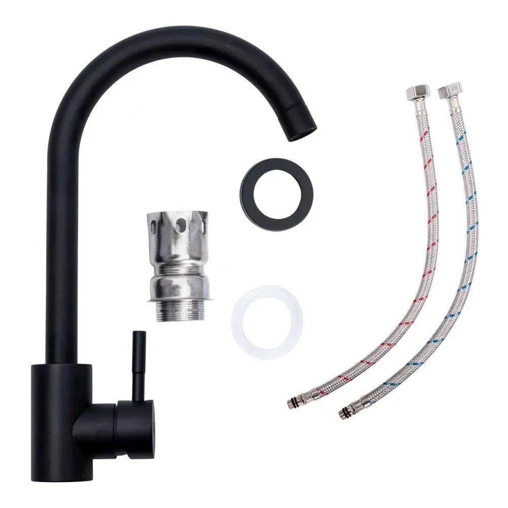 Смеситель кухонный Platinum BG76 поворотный, однорычажный из нержавеющей стали, Черный (000036379)