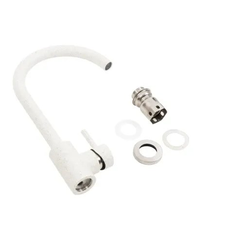 Смеситель кухонный Platinum NА3008A поворотный, однорычажный из нержавеющей стали, Белый в точку (SP000032794)