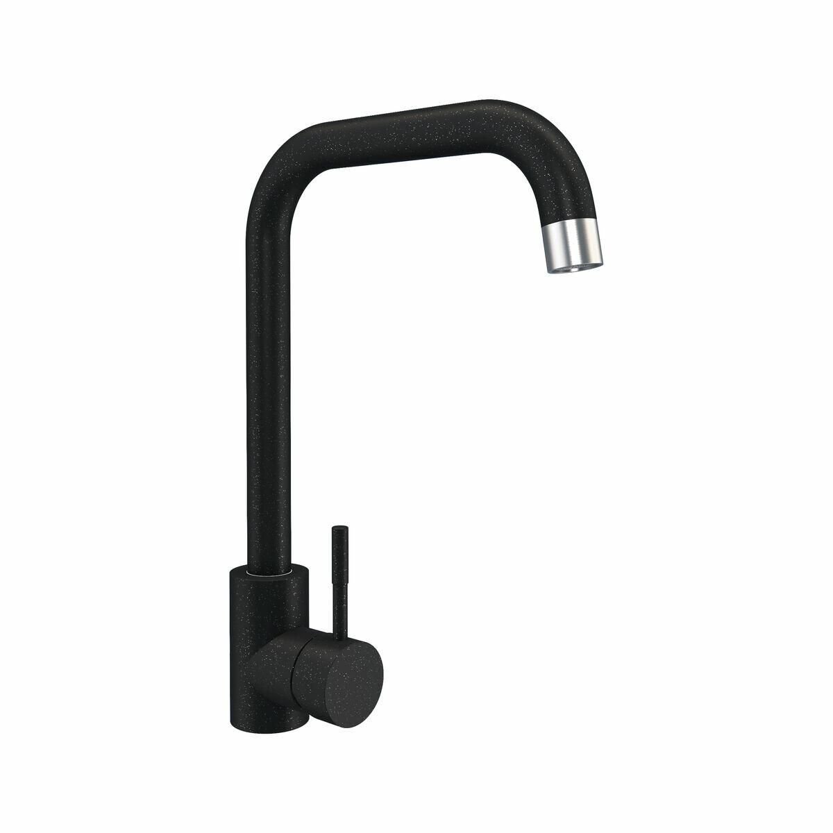 Смеситель кухонный Platinum NА3008B поворотный, однорычажный из нержавеющей стали, Черный металлик