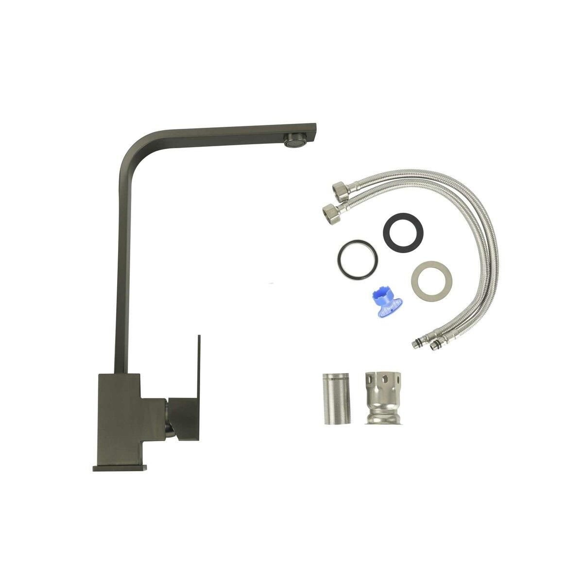 Смеситель кухонный Platinum PVD 7104 BW поворотный, однорычажный из нержавеющей стали, Черный (SP000033662)
