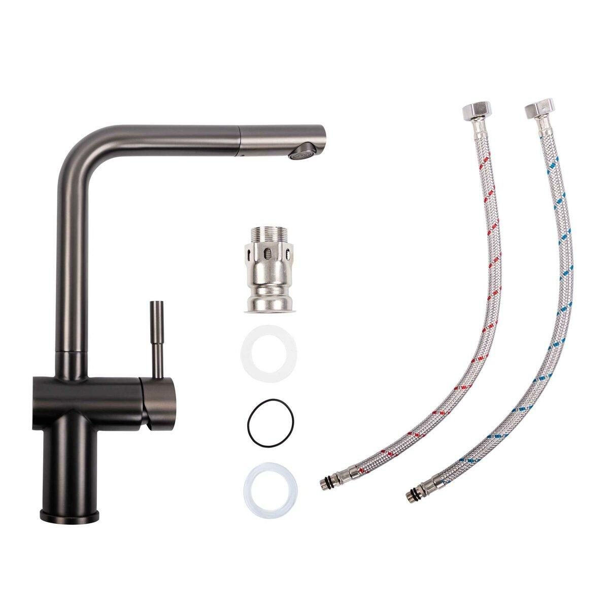 Смеситель кухонный Platinum PVD 8006А-LI поворотный, однорычажный из нержавеющей стали, Черный (SP000036106)