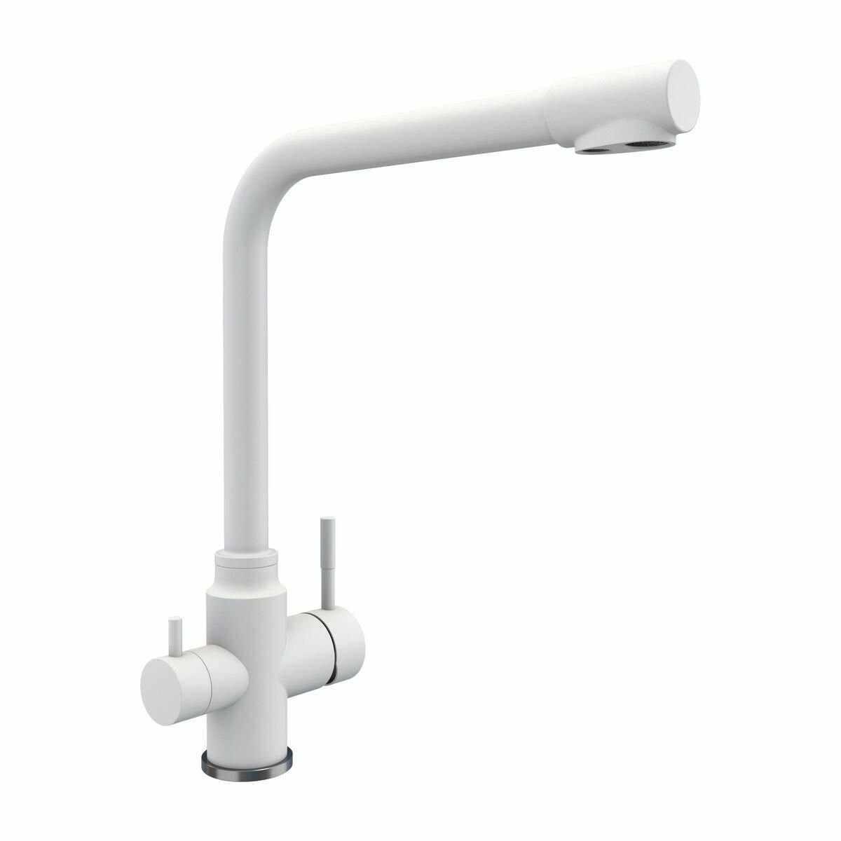 Смеситель под фильтр Platinum KT 8201 (8626) поворотный, двухрычажный из нержавеющей стали, Белоснежный