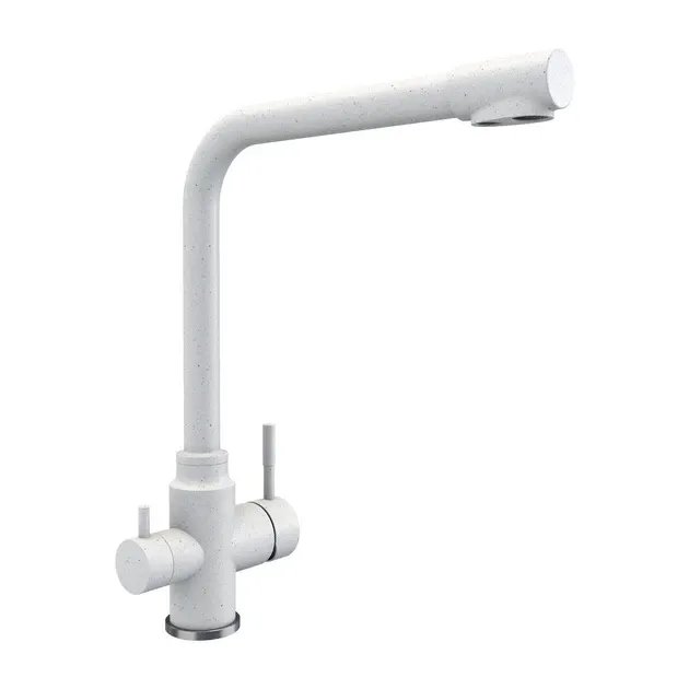 Смеситель под фильтр Platinum KT 8201 (8626) поворотный, двухрычажный из нержавеющей стали, Белый в точку