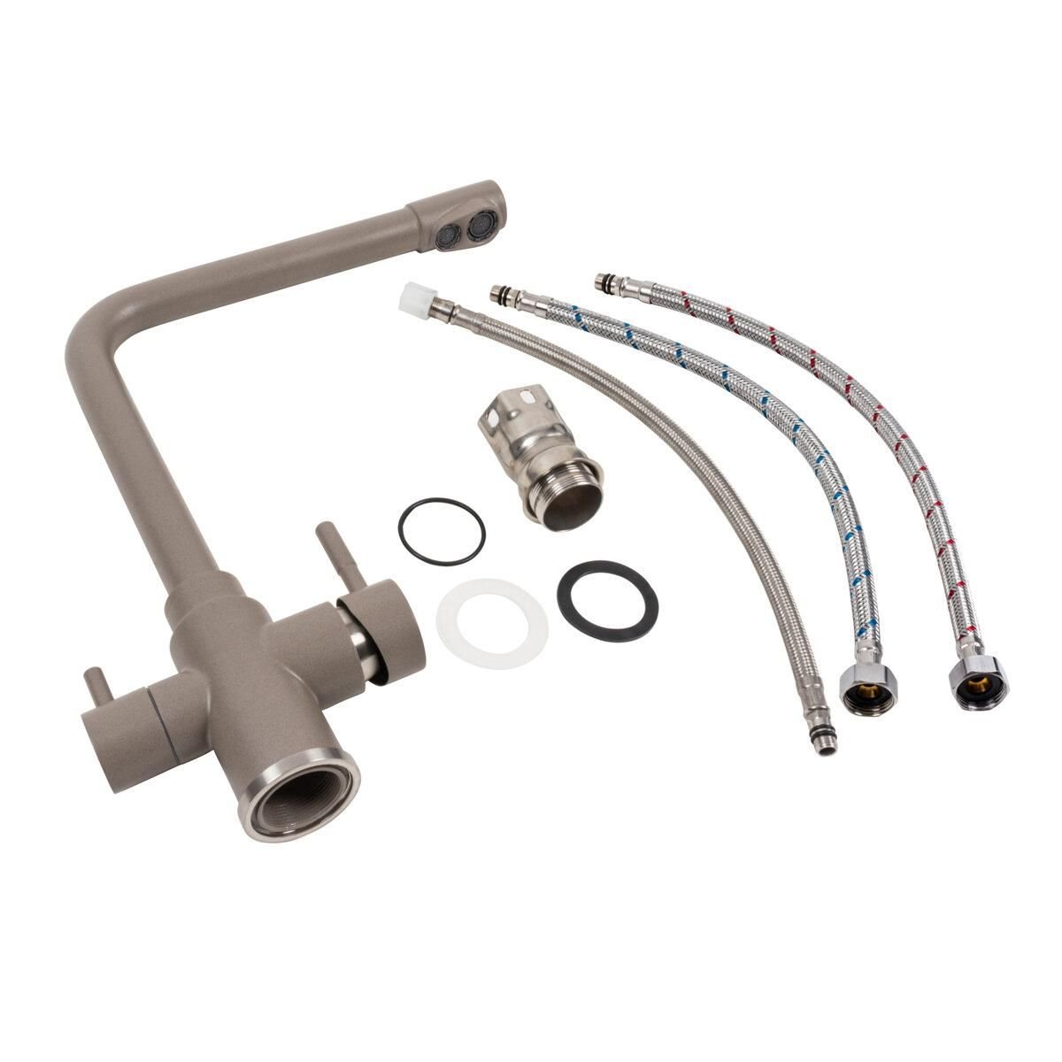 Смеситель под фильтр Platinum KT 8201 (8626) поворотный, двухрычажный из нержавеющей стали, Дюна (SP000041073)