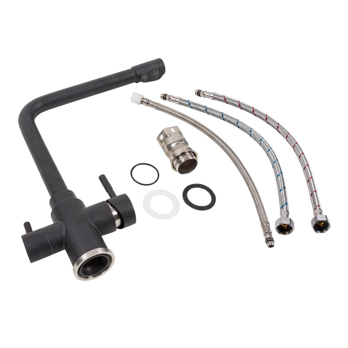 Смеситель под фильтр Platinum KT 8201 (8626) поворотный, двухрычажный из нержавеющей стали, Карбон