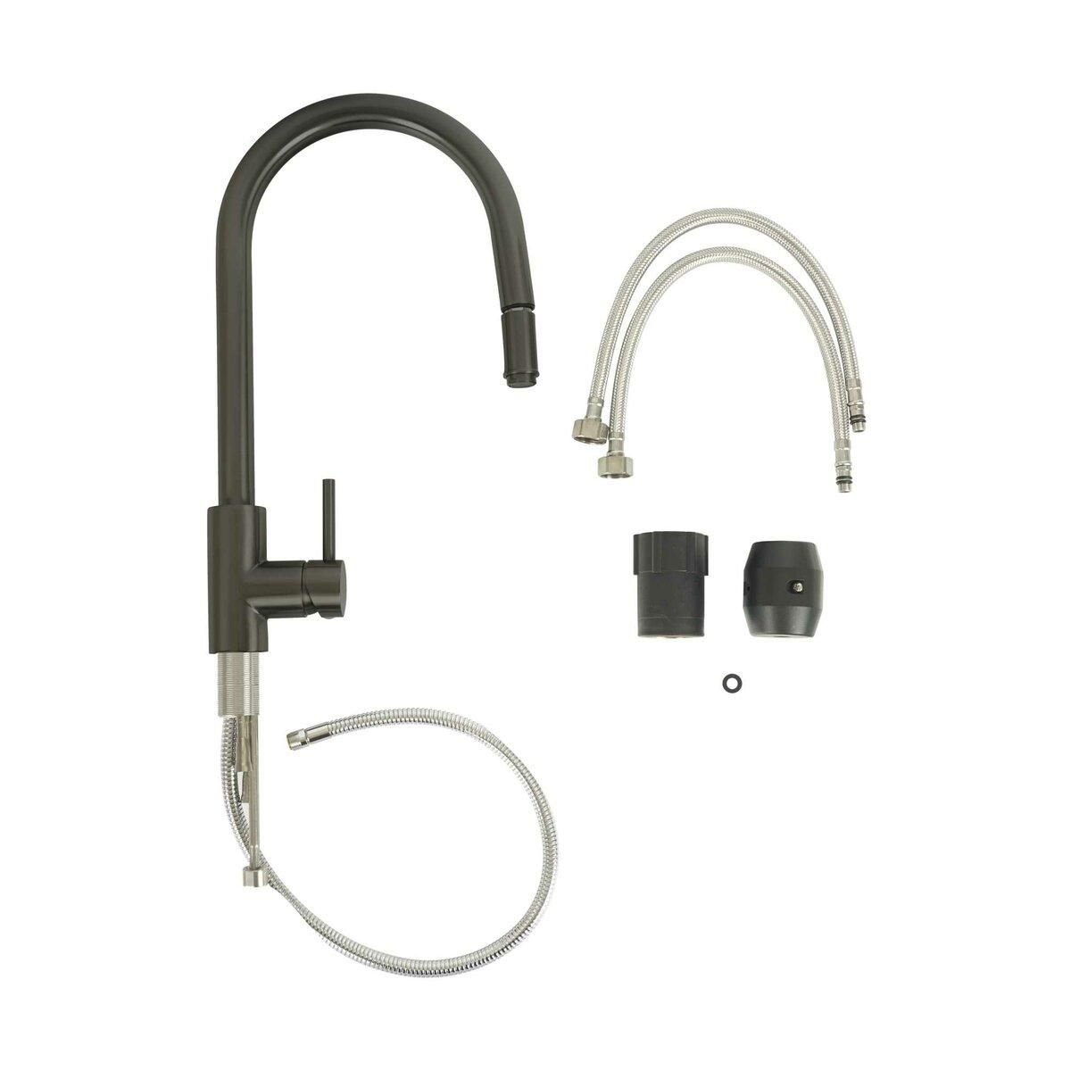 Змішувач кухонний Platinum PVD з висувним виливом чорний 6041 BW